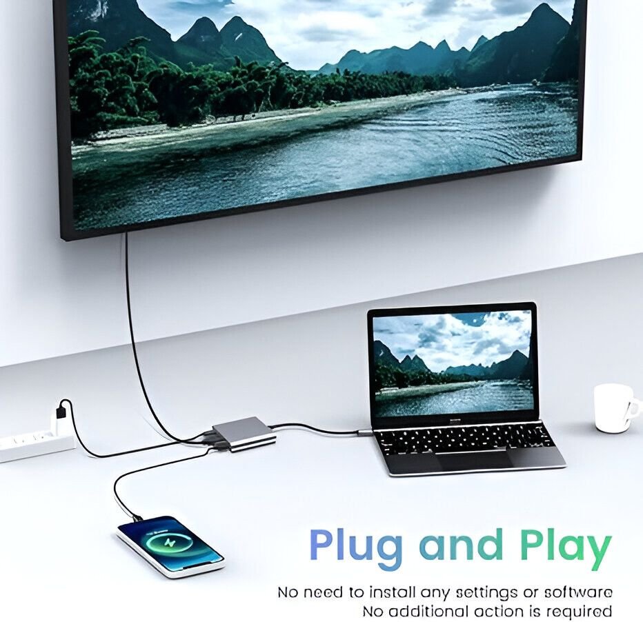 Hub Adaptador C Usb Hdmi C Cable Tipo C Modv 0013 Plateado
