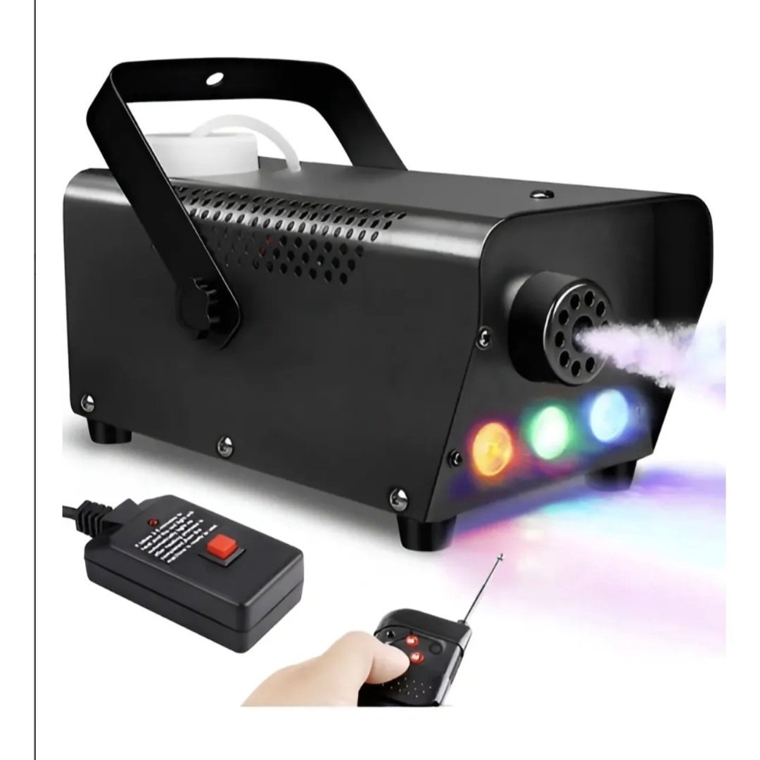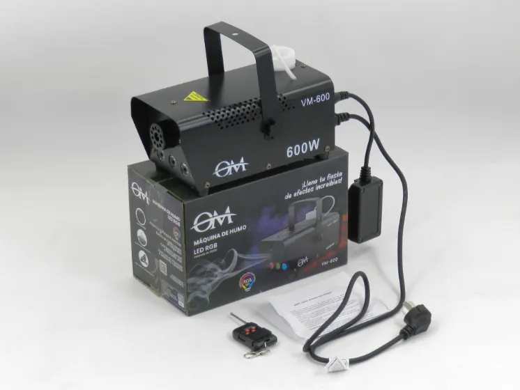 Máquina de humo con iluminación LED RGB integrada, ideal para crear efectos visuales profesionales en eventos, escenarios o fiestas. Características principales: – Potencia: 600 W