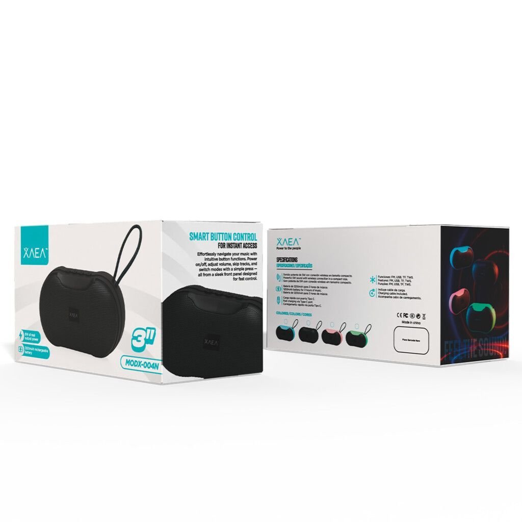 ¡Tu parlante compacto de confianza! Con 5W de potencia y conexión Bluetooth, este modelo de 3” es ideal para acompañarte con buena música donde vayas. Cuenta con funciones FM, USB, TF y TWS, luces LED y batería de 1200mAh con hasta 3 horas de uso. Incluye cable de carga y puerto Tipo C. Características: -PARLANTE PEQUEÑO BT 3” -POTENCIA 5W -BATERIA: 1200mah -PUERTO DE CARGA: TIPO C -DURACION BAT: 3HS -FUNCIONES: FM/TF/TWS/USB -LUZ LED -ACCESORIOS: CABLE DE CARGA -MEDIDAS: 11*10,2*10,2