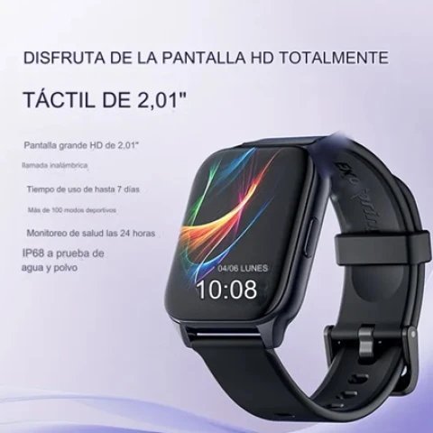 Equipada con una pantalla táctil TFT de 2,01 pulgadas y una resolución de 240 x 282 píxeles, ofrece una visualización clara y nítida de notificaciones y contenido.